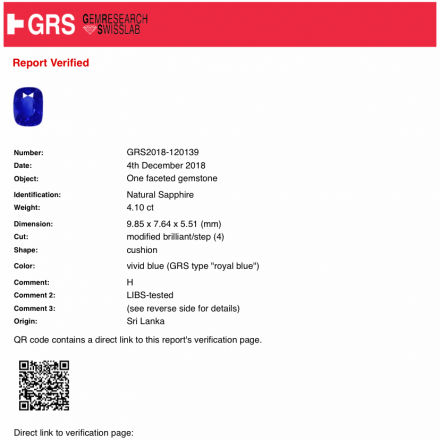 4.10卡天然藍寶石、Royal Blue 色級、產地 : Sri Lanka