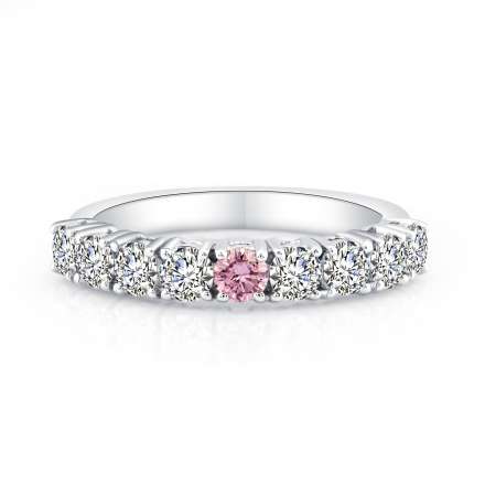 中間一粒粉紅鑽為主軸的經典線戒,低調中的奢華。