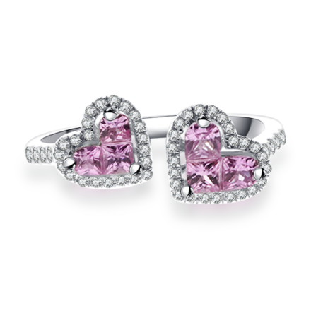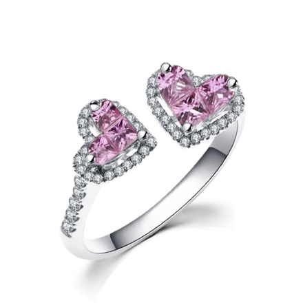 雙心型鑽石戒指,左右排列的心心相印設計,
